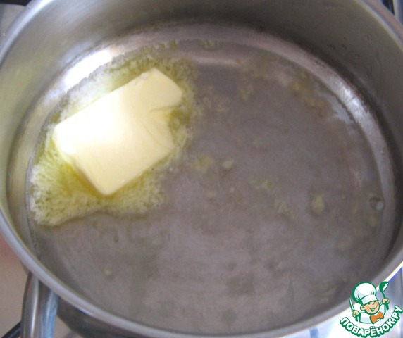 Довести до кипения полстакана воды со сливочным маслом и снять с огня, когда начнет кипеть.