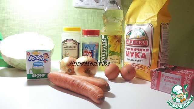 Берем кефир выливаем в миску, в кефир добавляем соду (т. е. гасим соду), после соль, сахар, яйца, масло подсолнечное - все тщательно перемешиваем.