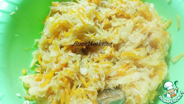 Укладываем на них нашу начинку, в моем случае это капуста+морковь+лук )))