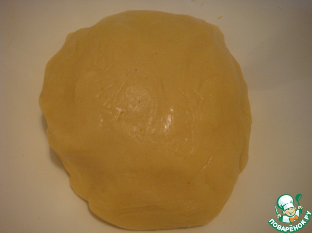 Замесить тесто сначала ложкой, потом руками. Тесто получается очень пластичное, замешивается легко и быстро.