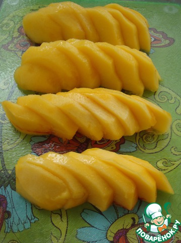 За это время очистить персики от кожицы, удалить косточку и нарезать тнкими ломтиками.