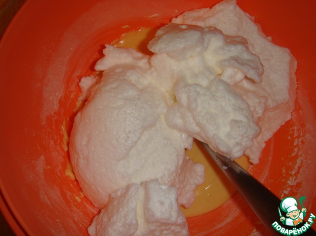 За это время приготовить тесто-заливку. Для этого взбить 3 яичных желтка с 50 г. сахарного песка и щепоткой ванилина.