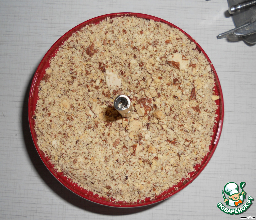 В тесто высыпать измельченные орехи, очень аккуратно вмешать взбитые белки.