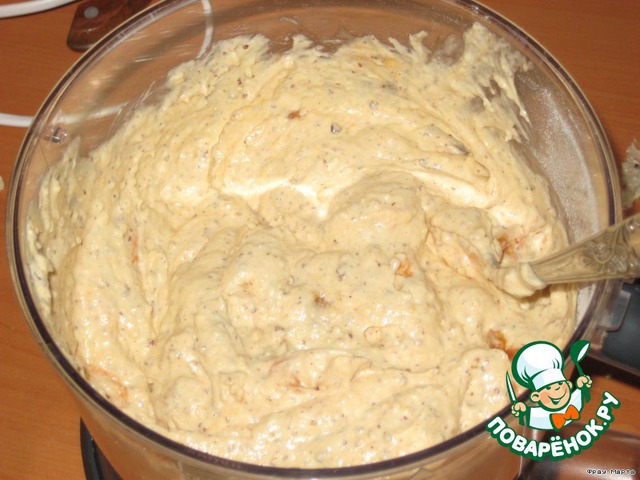 Смешать все ингредиенты для теста, в том числе и молотые орехи. Я проделала это в кухонном комбайне.