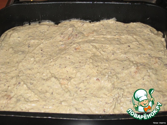 Форму для выпекания смазать растительным маслом и выложить тесто. Поставить в разогретую духовку и выпекать 45 минут при температуре 180*С.