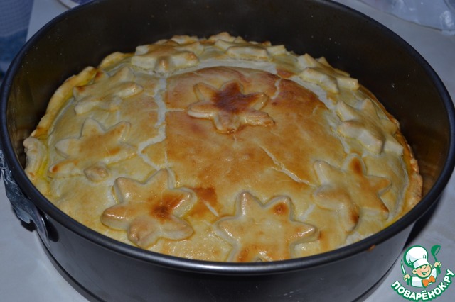 Смазываем верх пирога взбитым яйцом. Выпекаем в предварительно разогретой до 200 градусов духовке 35 мин. Ориентируйтесь по своей духовке!