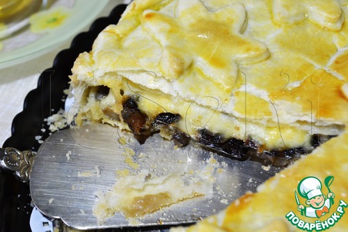 | Я сегодня к Вам с пирогом. Подобного не нашла. Пирог готовить очень быстро. Сочетание жареных с луком грибов и чернослива придает пирогу пикантность. Всех любителей чернослива приглашаю к себе. За идею пирога спасибо Маргарите Коновальчик. |