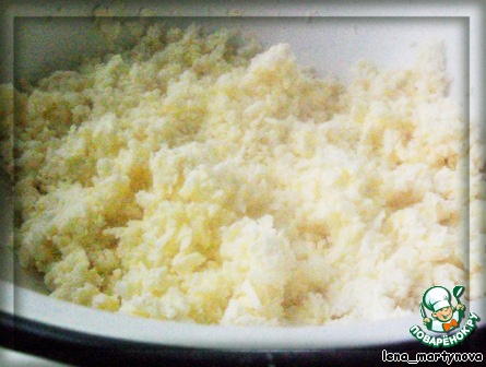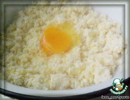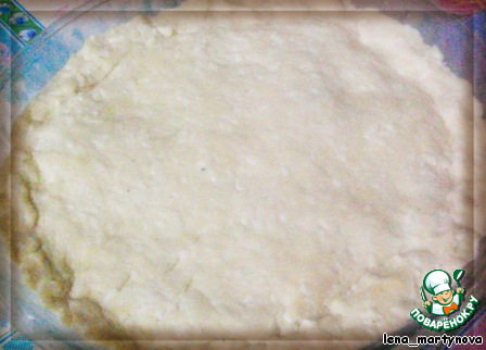 Выложить массу в муку, перемешанную с разрыхлителем, и замесить тесто.