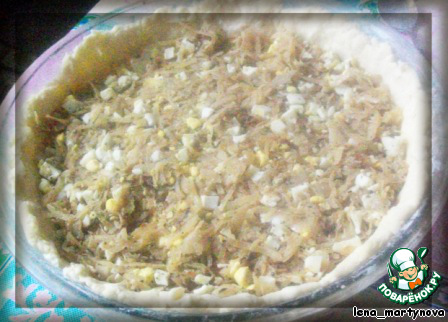 Для начинки капусту нашинковать, потушить до готовности и добавить сваренные вкрутую 3 яйца.