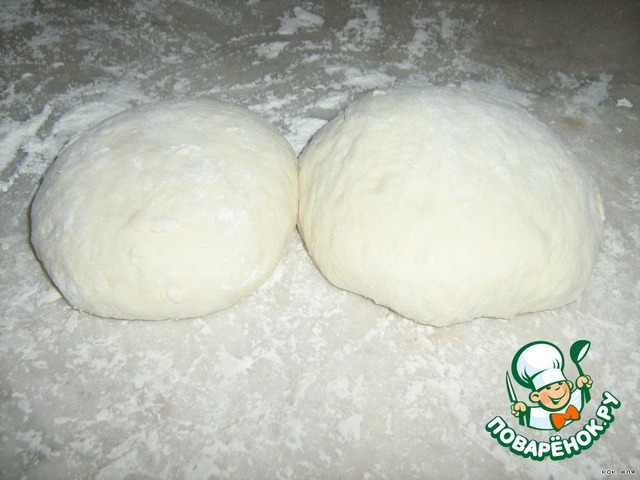Когда наше тесто созреет делим его на две части 1 побольше ,2 поменьше .