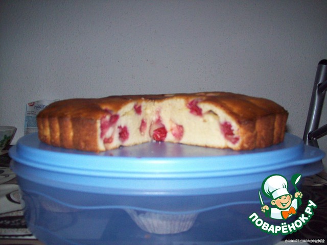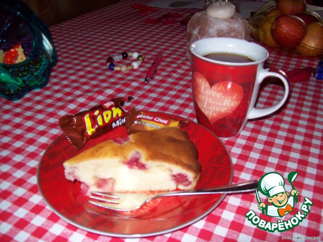 | Очень вкусный кисло-сладкий пирог. Вообще, по оригиналу, в пирог должны входить фрукты, но у меня была вишня и я решила сделать с ягодой. Получился очень вкусный, нежный пирог. |