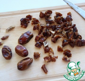 Добавить в тесто нарезанные финики или измельченные грецкие орехи. Я добавила приблизительно 100 г, чуть больше-меньше не критично.