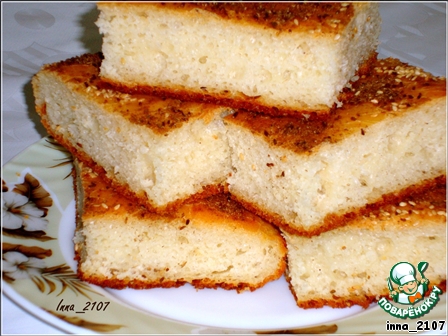 | Очень быстрый и вкусный пирог для завтрака или на обед с супом. Нам понравился и просто с чаем, да и с ряженкой вкусно. Рецепт позаимствовала у Оли-panama, и благодарна ей за такой простой и вкусный пирог, хотя немного изменила состав. Это очень старый рецепт платтовских немцев – оттуда и название. |