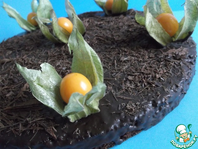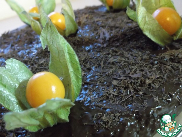 Пока шоколад не схватился, "высаживаем" в произвольном порядке цветы физалиса