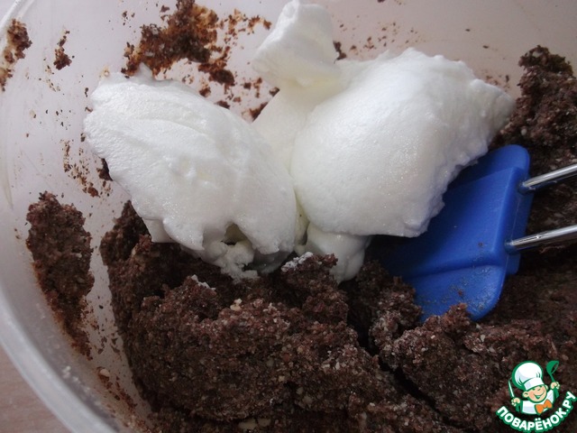 Осторожно ввести взбитые белки, тщательно перемешать.