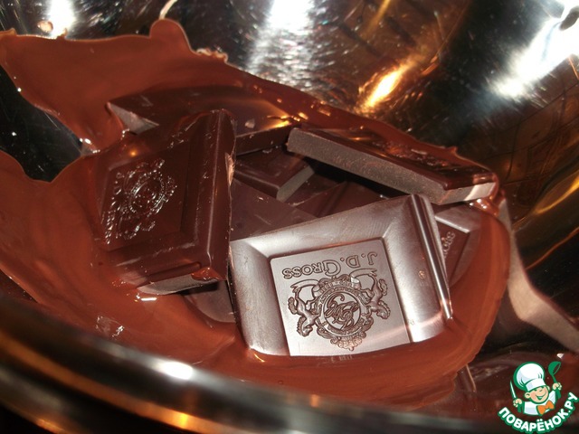 Оставшийся шоколад ( 150 г ), растапливаем на водяной бане.