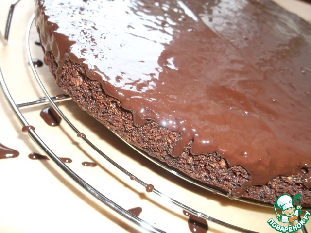 Выливаем оставшийся растопленный шоколад на пирог, разравниваем шпателем (ложкой, ножом )