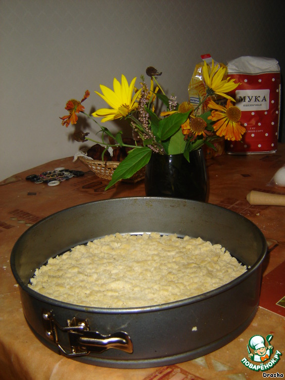 Раскатываем тесто, укладываем в форму для выпечки, прокалываем вилкой, чтобы тесто не поднималось, выпекаем при 180градусах 20 минут.