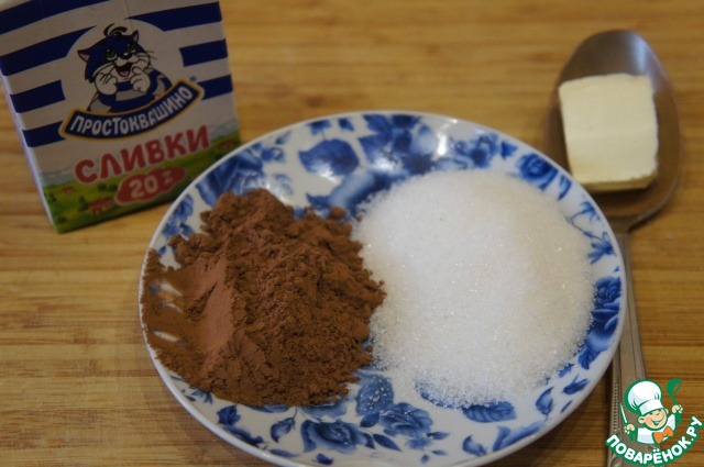 Сливки смешать с какао и сливочным маслом. Нагреть на небольшом огне, мешая, до однородности. Варить до легкого загустевания.
