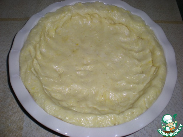 Тесто получается мягкое и мы его руками свободно распределяем по форме, делая бортики.
