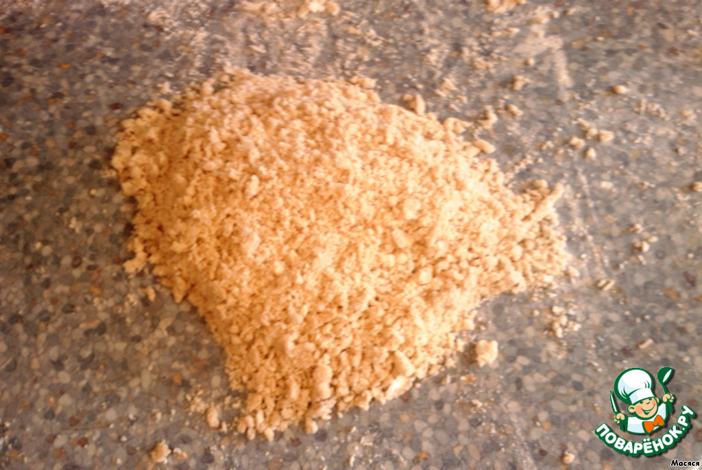 Теперь приготовим крошку: масло, сахар, муку и корицу рубим ножом или разминаем руками до образования крошки.
