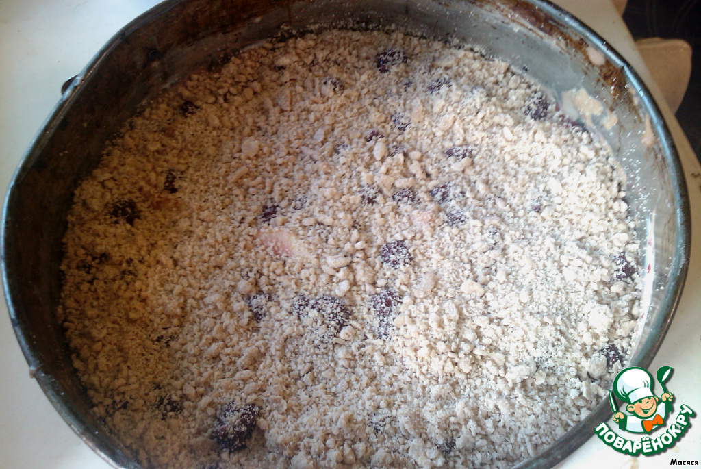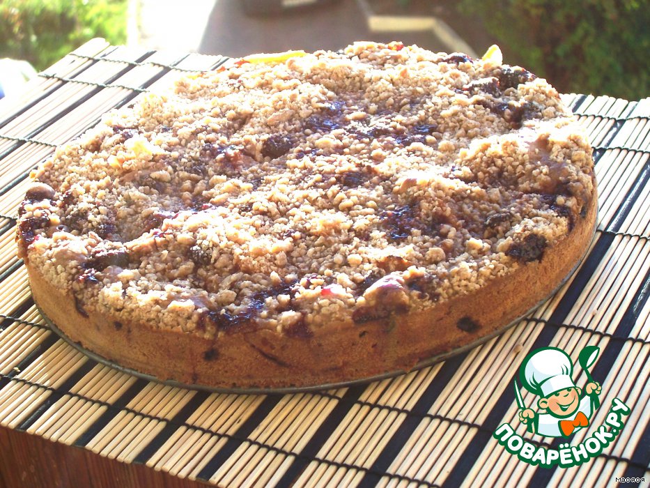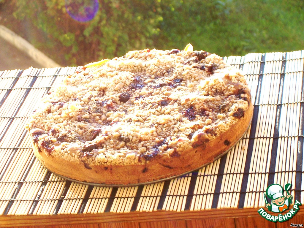 Посыпаем крошкой начинку и ставим пирог в разогретую духовку на 30-40 минут. Готовность проверяем спичкой!