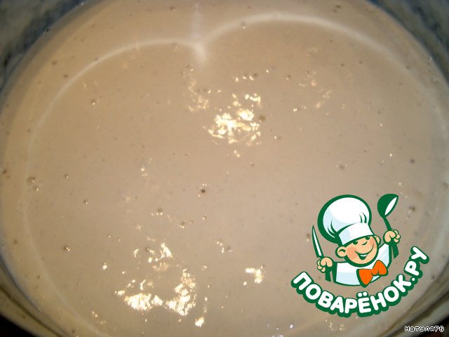 Делаем опару. В теплом молоке разводим дрожжи, добавляем водку и два стакана муки. Опара получается довольно крутая. Ставим ее в теплое место.
