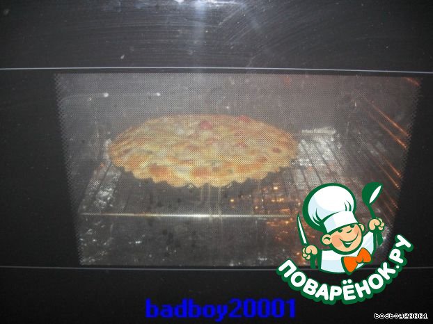 Поставить в разогретую до 190-200 град. духовку, на нижнюю полку