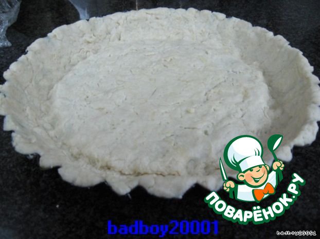 Тесто вынуть из холодильника и выложить в форму для пирога