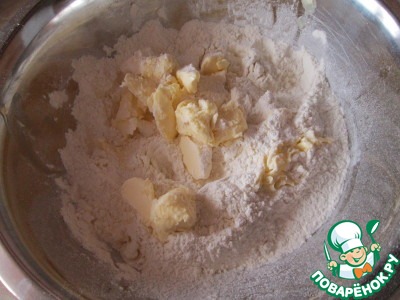Тщательно перемешать масло с мукой, чтобы не осталось крупных комочков