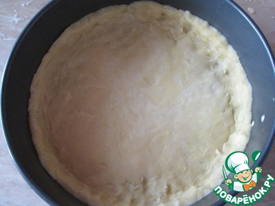 Накрутить на скалку, перенести в форму, выложить, разровнять и сделать бортики