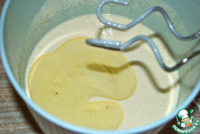 Закваску смешиваем с яйцами, добавляем сметану.