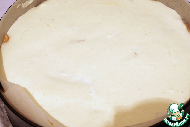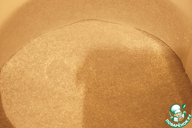 Включить духовку на разогрев до 200 градусов. Разъемную форму (диаметр 24 см.) выстелить пергаментом и слегка обсыпать манкой.