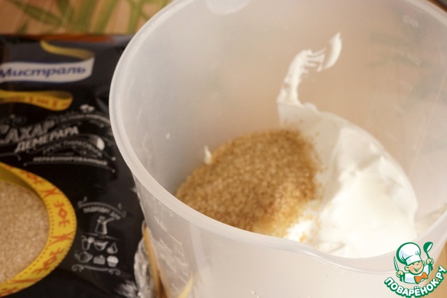 А мы займемся творожной прослойкой. Для этого творог смешать с коричневым сахаром.
