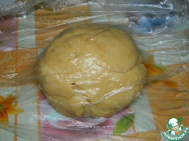 Тесто накрываем пленкой и оставляем на столе минут на 30 отдохнуть.