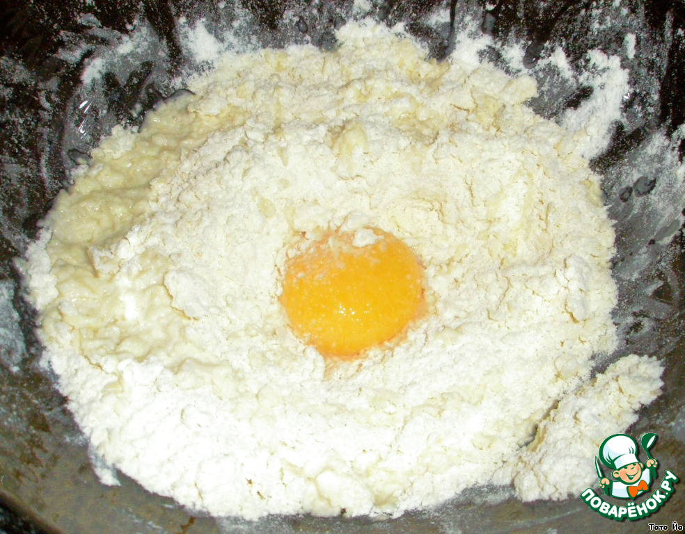 Делаем в центре небольшую дырочку. Смазываем яйцом.