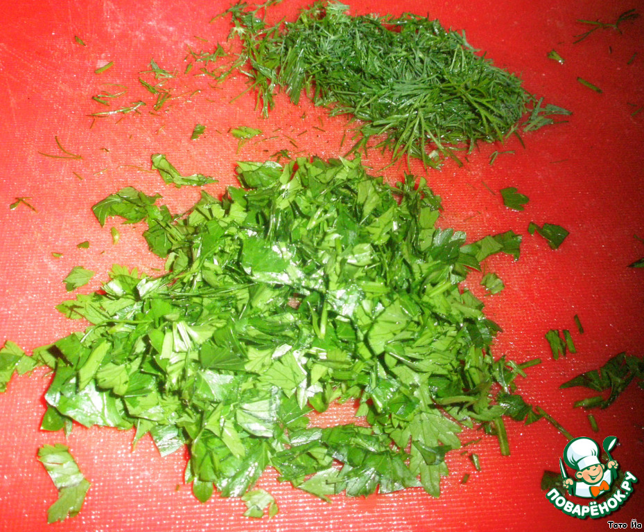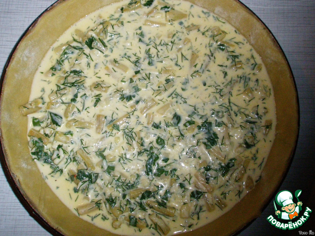 Смешиваем яичную смесь с фасолью и зеленью. Вот такая получается начинка.