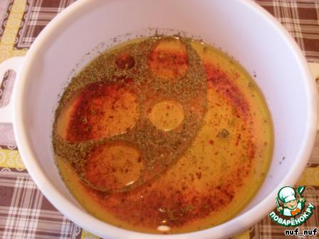 в горячую воду всыпать соль, розмарин, паприку и сушёные травки.
