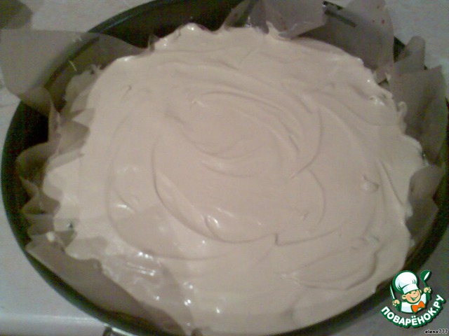 Вылить тесто в форму, застеленную промасленной бумагой. Края бумаги оставьте чуть выше краёв формы.