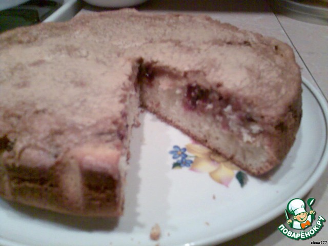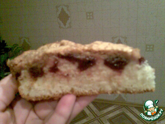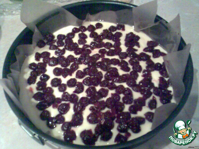 На тесто выложить вишню, тут я пожалела, что не положила побольше начинки (надо было положить 1,5 стакана) - мои все любят, когда много начинки.