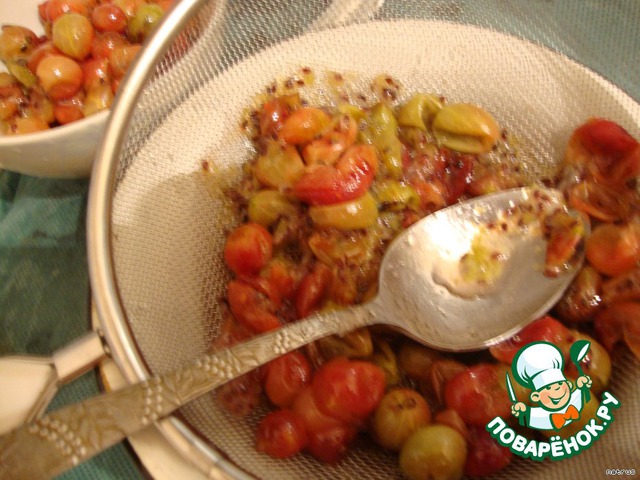 В это время подготовить ягоды. Крыжовник вымыть, удалить плодоножки и варить с оставшимся сахаром минут 10, чтобы ягоды дали сок и стали мягкими