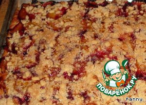 Муку и сливочное масло перемешать вручную, добавить сахар. Этой посыпкой присыпать сливы.