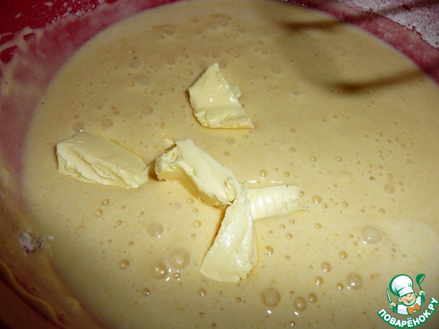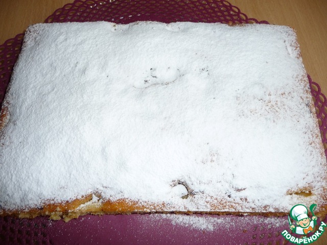 Залить второй частью теста. Печь в разогретой духовки при 180С 25-30 мин. до золотистого цвета. На готовность проверить деревяной спажкой.