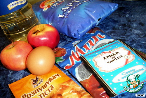 | Пирог получился нежный, яблочки и мак хорошо чувствуются. Рецепт из livejournal, спасибо chatskaa. |