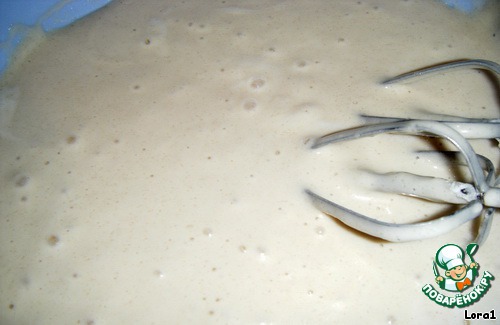 1. Яйца взбить с сахаром, соду погасить уксусом, влить растительное масло, ряженку и добавить муку