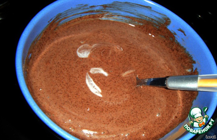8. На водяной бане всыпать в пиалу Какао, Ряженку, Сахар, все помешиваем, когда всe растворится, закидываем сливочное масло и мешаем до однородности
