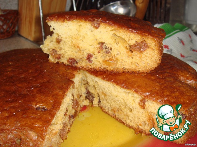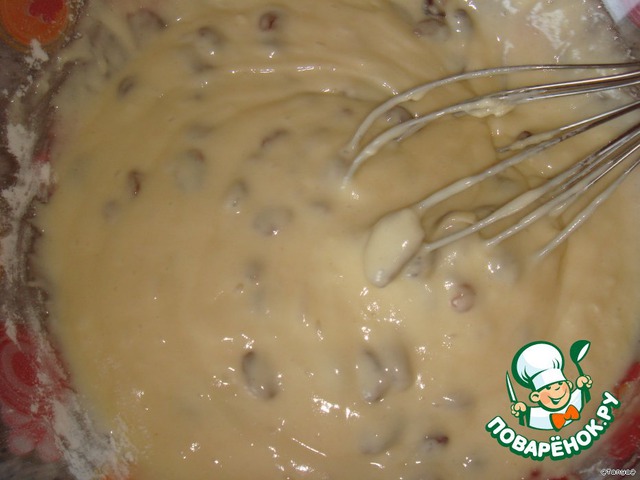 Добавить муку и изюм. Перемешать. Выложить на смазанный сливочным маслом противень.