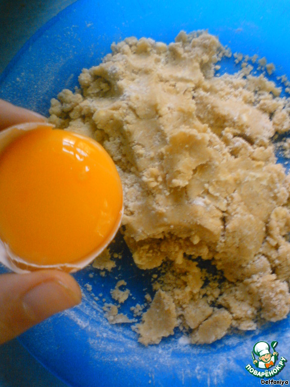 Для начала я расскажу вам несколько секретов, которые узнала в поисках хорошего рецепта песочного теста. Чтобы оно получилось как можно более песочным, то есть рассыпчатым, но с другой стороны достаточно плотным, чтобы не сильно крошилось и держало форму, нужно соблюдать следующие условия. Масло, яйца и жидкость должны быть холодными. Масло и яйца одной температуры, вода или другая жидкость – ледяная. Замешивать тесто нужно очень быстро. Желательно порубить масло с сухими ингредиентами двумя ножами. Если замешивать в комбайне или блендере, они могут нагреть масло, и оно подтает. Масло должно остаться в тесте после замешивания не растаявшими кусочками, если оно растает и пропитает муку – готовое изделие получится жестким. Если после замешивания сухих ингредиентов с маслом добавить яйцо, изделие будет более плотным, если только желток – более рассыпчатым. Если после добавления яйца или желтка тесто липкое, добавьте ледяной воды или другой жидкости (лимонный сок, вино). Если переборщить с мукой, изделие также будет жестким. Также рассыпчатым его можно сделать, добавив в тесто любые молотые орехи (в том числе и кокосовую стружку), при этом можно заменить ими часть муки или добавить уже дополнительно к имеющимся ингредиентам. В последнем случае они должны составлять не больше, чем четверть веса или объема муки. Муки (либо мука + орехи) должно быть в два раза больше, чем масла. Количество сахара может варьироваться, в зависимости от наличия начинки (если это пироги, а не печенье) или от того, сладкая ли планируется начинка. Кстати, если есть желание сделать изделие еще более рассыпчатым (этот прием используется для печенья) – добавьте вместо сахара сахарную пудру. Чем темнее сахар, тем он плотнее и тем меньше его нужно добавлять по сравнению с обычным рафинированным. После замешивания необходимо убрать тесто в холод, предварительно раскатав на форме и наколов вилкой, но это можно сделать и перед выпечкой, главное соблюдать условие – масло должно таять уже при выпечке, в разогретой духовке, но не раньше!