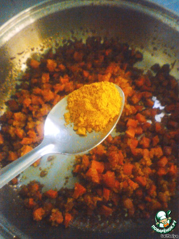 К моркови так же можно добавить четверть чайной ложки куркумы для более яркого оранжевого цвета (не обязательно). Куркуму можно заменить шафраном, хотя чаще поступают наоборот из-за его высокой стоимости :)