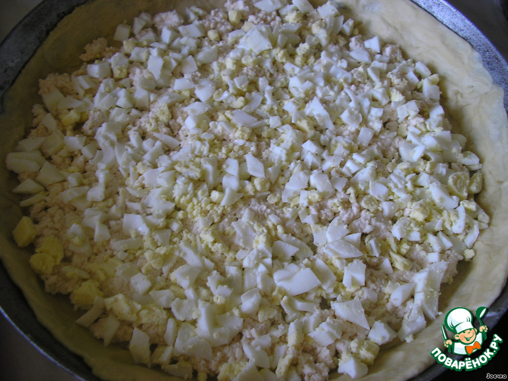 Затем мелко нарезанные яйца.
